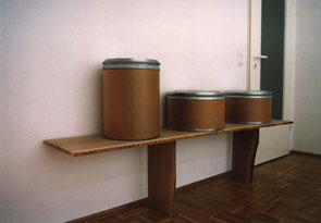 Kragbretter aus massiven Bohlen__Eiche, Platane, Ahorn__ die natürlichen Risse bleiben erhalten und werden mit speziellen Holzverbindungen fixiert__ die Boxen haben wir in unterschiedlichen Größen__