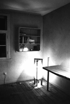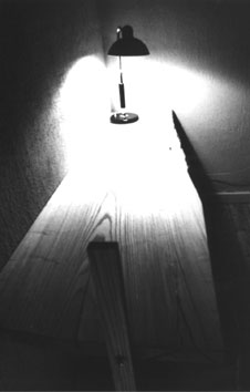 Gestaltung und Konstruktion: 2003__eine Glasvitrine, eine Papier-Leuchte, ein Schreibtisch aus Esche und ein Stuhl__