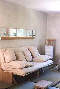 mit Polster aus Stoff oder Leder__ aus massivem Holz__sehr bequem und doch reduziert und leicht__
