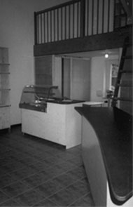 Regalbox-Stecksystem, Counter mit geschwungener Granitplatte, rollbare